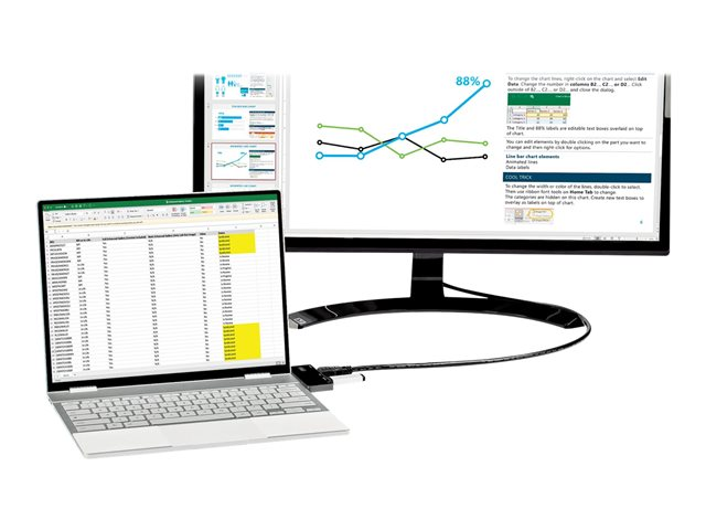 Adaptateur multiport USB-C compatible DP 1.4. Transforme vos iPad Pro, Surface Pro 7, Google Pixelbook et autres tablettes et ordinateurs portables USB-C en poste de travail, où que vous soyez. L'adaptateur multiport USB Type-C offre une sortie vidéo HDMI 4K 60 Hz (HDR10), un port USB Type-C (données/alimentation), deux ports USB 3.2 Gen 1 de type A (5 Gb/s) et un port audio TRRS 4 canaux pour casque et micro, le tout via une connexion unique au port USB-C ou Thunderbolt 3 de votre ordinateur portable. Offre une charge avancée via USB Power Delivery 3.0 100 W et élimine le besoin de disposer d'un câble relié avec une connexion USB-C directe/encastrée.