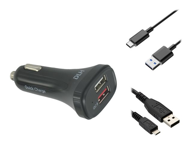 Description du produit DLH DY-AU2861B adaptateur d'alimentation pour voiture - USB - 20 Watt Type de Produit Adaptateur d'alimentation pour voiture Dimensions (LxPxH) 3.7 cm x 7.5 cm x 2.5 cm Poids 16 g Couleur Noir Type de prise Total 2: USB Tension requise CA 100/240 V (50/60 Hz) Tension fournie 3.5 / 6.5 / 9 / 12 V Courant électrique max. 3 A Technologie de charge rapide Qualcomm Quick Charge 3.0 Alimentation fournie 20 Watt Détails du dispositif d'alimentation - USB Type A 4 broches - 2 A