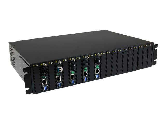 Pour plus de polyvalence, ce convertisseur Ethernet fibre optique permet un fonctionnement autonome ou une installation dans le châssis monté en rack 2U à 20 fentes (ETCHS2U).