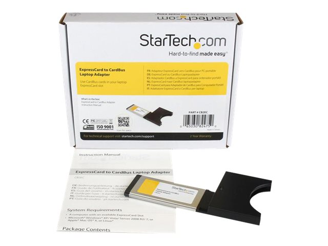 Cette carte adaptateur pour PC portable ExpressCard vers PCMCIA permet de convertir un port de PC portable ExpressCard en un port CardBus PCMCIA, afin d'utiliser les anciennes cartes CardBus sur un ordinateur portable plus récent (compatible ExpressCard). Idéal pour une utilisation avec Ethernet LAN, Broadband, Modem et les autres cartes d'extension CardBus, l'adaptateur supprime le coût engendré par le remplacement de vos cartes CardBus existantes, à des fins de compatibilité. La carte adaptateur prend en charge les principaux systèmes d'exploitation, tels que Windows XP, Vista , Mac OS X et versions ultérieures et bénéficie de la garantie StarTech.com de 2-ans.