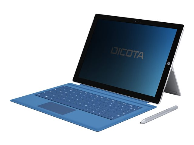 Description du produit DICOTA - filtre de confidentialité de PC tablette Type de produit Filtre de confidentialité de PC tablette - à double sens Type d'installation Adhésif Couleur Noir Matériau du produit PET Dimensions (LxPxH) 28.7 cm 19.65 cm Poids 20 g Caractéristiques Anti-reflet, installation sans bulle, protection contre les lumières bleues, couche arrière en silicone, capacité tactile Garantie du fabricant Garantie de 2 ans Conçu pour Microsoft Surface Pro 3 -