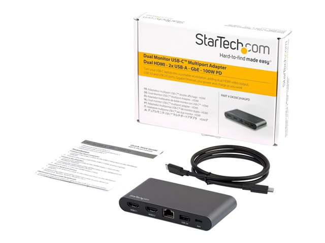 Station d'Accueil USB-C à Double Écran 4K HDMI - 100 W Power Delivery Pass-through, GbE, 2 USB A - Mini Hub Type C - Adaptateur Multiport pour PC Portable (DK30C2HAGPD) - Station d'accueil - USB-C - 2 x HDMI - 1GbE - pour P/N: ARMBARDUO, ARMBARDUOV, ARMDUAL, ARMDUAL30, ARMDUALV, ARMSLIMDUO