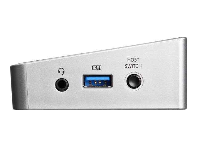 Compatible avec les ordinateurs portable Mac et Windows équipé d'USB 3.0, la station d'accueil PC KVM comprend deux câbles USB 3.0 pour une installation rapide ainsi qu'un bouton facile d'accès pour basculer facilement entre les ordinateurs portables.
