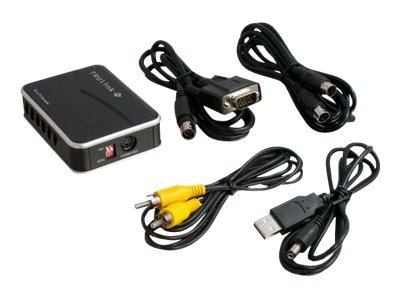 L'adaptateur PC-TV Cables To Go vous permet de convertir le signal VGA d'un ordinateur en une vidéo composite de sorte que vous pouvez connecter votre ordinateur, Mac ou autres périphériques VGA à votre téléviseur ou projecteur. Cette fonction est utile lorsque vous connectez votre ordinateur à un ancien téléviseur ou projecteur qui ne prend pas en charge le signal VGA pour un affichage sur grand écran. Cet appareil est également livré avec ports de sortie VGA et S-Vidéo pour permettre l'affichage sur plusieurs écrans qui peuvent prendre en charge ces signaux. Le kit de conversion est livré avec un adaptateur d'alimentation USB de sorte qu'il peut être alimenté à partir de votre ordinateur au lieu d'avoir une prise dédiée. Le faible encombrement de ce dispositif permet de le déplacer facilement ou de l'adapter à des espaces restreints. Les options du menu permettent une personnalisation des paramètres de réglage de l'affichage.