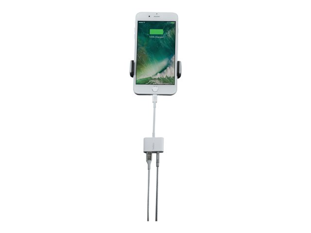 Description du produit Belkin 3.5 mm Audio + Charge RockStar - Lightning vers prise casque/adaptateur de charge - Lightning / audio Câble Lightning vers prise casque/adaptateur de charge - Lightning / audio Couleur Blanc Connecteurs Lightning - mâle Connecteurs (deuxième extrémité) Lightning - femelle