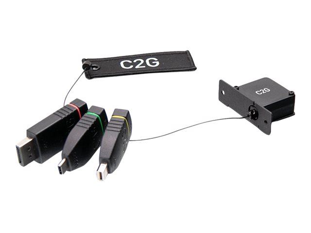 Description du produit C2G Retractable Table Box Mount 4K HDMI Adapter Ring with Color Coded Mini DisplayPort, DisplayPort, and USB-C - kit d'adaptateur vidéo - Mini DisplayPort / DisplayPort / HDMI / USB Câble Kit d'adaptateur vidéo - Mini DisplayPort / DisplayPort / HDMI / USB Nombre inclus 3 Couleur Noir Fonctions Support 4K Garantie du fabricant Garantie limitée à vie -