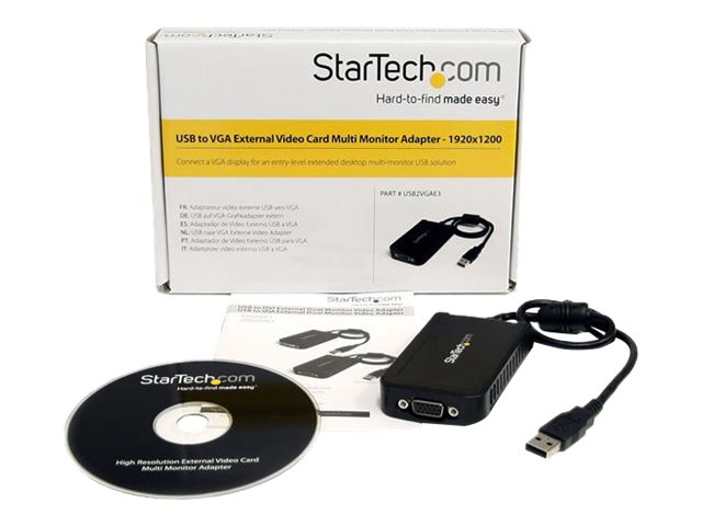 L'adaptateur vidéo externe multi-écrans USB VGA USB2VGAE3 vous permet d'ajouter une sortie VGA externe haute résolution (jusqu'à 1920 x 1200) à votre ordinateur de bureau ou portable, par le biais d'un port USB 2.0.