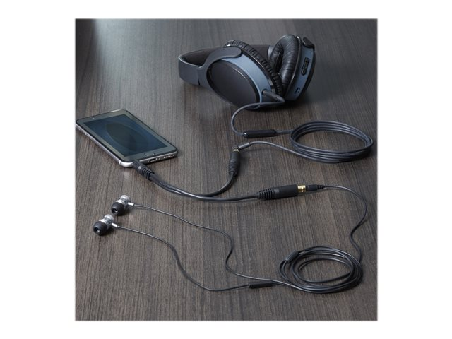 Le câble répartiteur stéréo en Y MUY1MFF 3,5 m est doté d'un connecteur mâle de 3,5 mm et de deux connecteurs femelles de 3,5 mm, qui permettent de dédoubler une prise de casque.