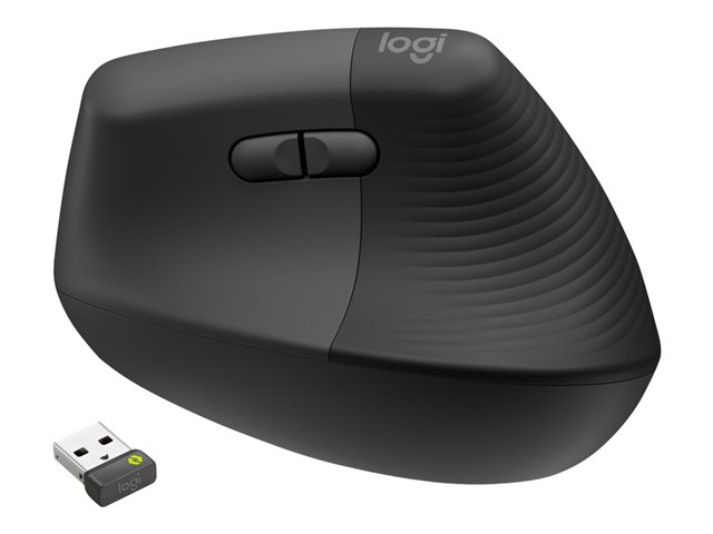 Souris verticale - ergonomique - pour gauchers - 6 boutons - sans fil - Bluetooth, 2.4 GHz - récepteur USB Logitech Logi Bolt - graphite