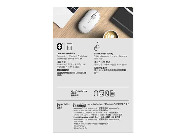 Transformez n'importe quel espace en un espace minimaliste, moderne et silencieux avec Logitech Pebble, la souris portable qui s'adapte à votre style de vie et qui vous accompagne dans toutes vos aventures. Sa forme organique lisse tient dans votre poche ou votre sac, et offre une prise en main confortable. Grâce à ses clics et son défilement silencieux, vous pouvez vous mettre au travail sans déranger ceux qui vous entourent.