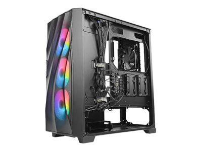 Fonctionnalités du boîtier systèmePanneau frontal maillé, capable d'accueillir un radiateur de 120 mm à l'arrière, filtre antipoussière sur la partie inférieure, filtre à poussière supérieur magnétique, emplacement pour radiateur 240/280/360 mm sur la partie supérieure, emplacement pour radiateur 240/280/360 mm sur le panneau avant, contrôleur de ventilateur RGB, bouton de contrôle LED, filtre à poussière magnétique latéral
