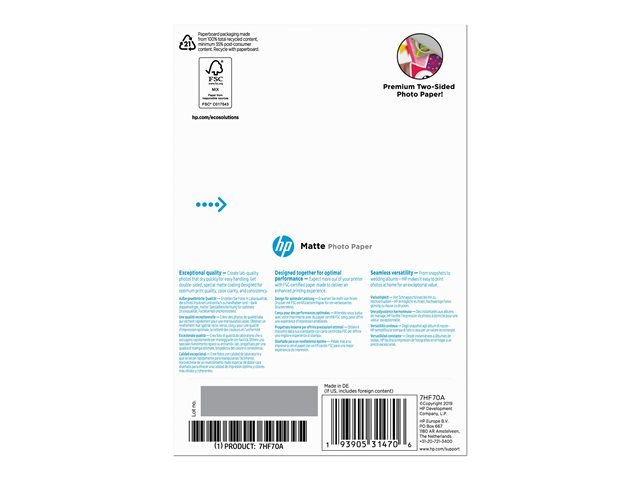 Avec ce papier photo certifié FSC , produisez de magnifiques photos qui illuminent. Co-conçu avec les imprimantes HP. Compatible avec une impression recto verso.