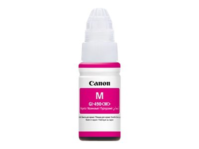 Description du produit Canon GI 490 M - magenta - original - recharge d'encre Type de Produit Recharge d'encre Technologie d'impression Jet d'encre Couleur d'impression Magenta Capacité 70 ml Rendement Jusqu'à 7000 pages Compatible avec PIXMA G1400, G1410, G1411, G2400, G2410, G3400, G3411, G3415, G4400, G4411 -