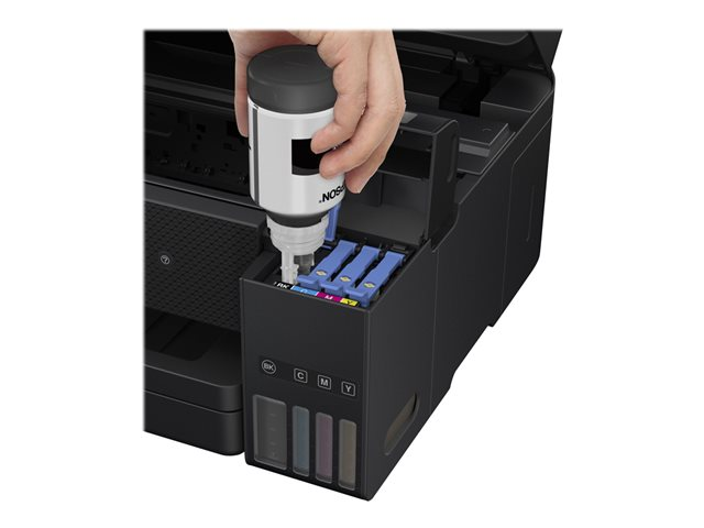 Économisez jusqu'à 90 % sur le coût de l'encre avec les imprimantes multifonction Epson EcoTank sans cartouches. Fournie avec des bouteilles d'encre haute capacité, ses réservoirs d'encre intégrés sont faciles à remplir grâce aux bouteilles d'encre spécialement conçues. Sans aucune cartouche à remplacer et dotée de fonctionnalités de connectivité flexibles, d'un fax et d'un chargeur automatique de documents, cette imprimante multifonction est idéale pour les personnes qui recherchent des impressions de haute qualité et un coût par page très bas.