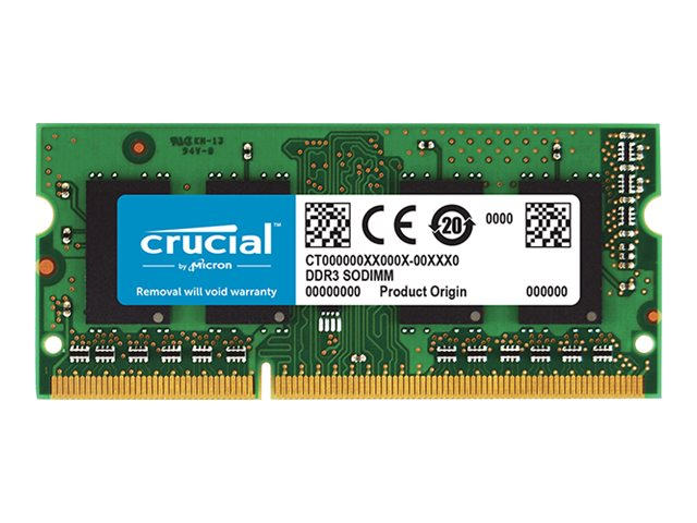 Description du produit Crucial - DDR3 - module - 4 Go - SO DIMM 204 broches - mémoire sans tampon Type de Produit Module mémoire Capacité 4 Go Type de mémoire DDR3 SDRAM - SO DIMM 204 broches Type de mise à niveau Générique Vérification de l'Intégrité des Données Non ECC Vitesse 1866 MHz (PC3-14900) Temps de latence CL13 Caractéristiques Basse tension, mémoire sans tampon Tension 1.35 V Garantie du fabricant Garantie limitée à vie -