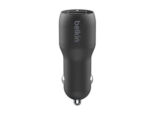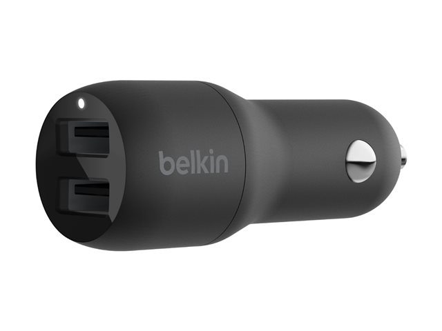 Le chargeur de voiture Dual USB-A Belkin BOOST?CHARGE (24 W), CCB001 est un chargeur de voiture à double port de 24 W. Il peut charger deux appareils sur ses ports USB-A jusqu'à 12 W chacun.