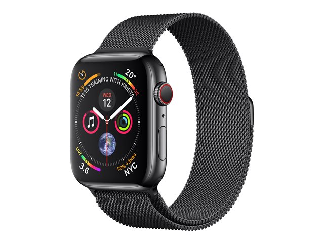 40 mm - boîtier en acier noir inoxydable - montre intelligente avec boucle milanaise - maille d'acier - boîtier noir - taille de bande 130-180 mm - 16 Go - Wi-Fi, Bluetooth - 4G - 39.8 g