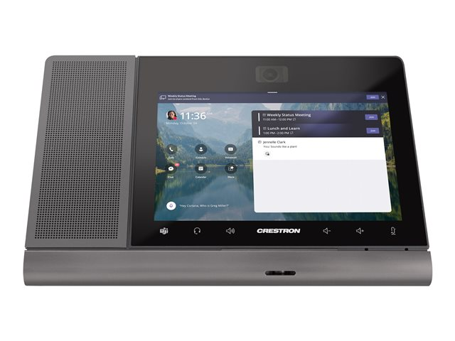 Conçu spécialement pour Microsoft Teams, le Crestron Flex s'intègre parfaitement à votre flux de travail, en prenant en charge l'authentification externe et l'annuaire actif. Qu'il s'agisse de petites réunions d'équipe ou de grandes conférences téléphoniques, cet appareil garantit une expérience de réunion productive et engageante.