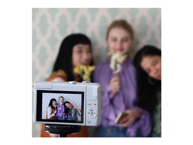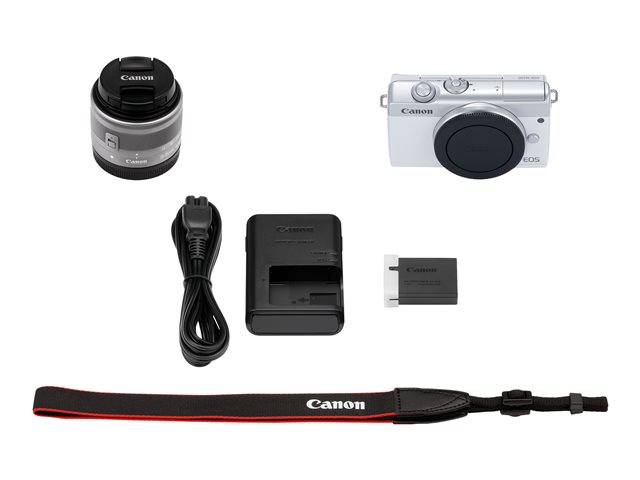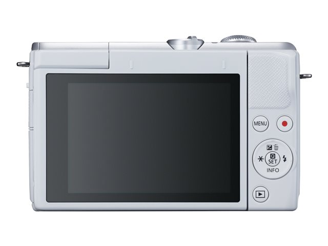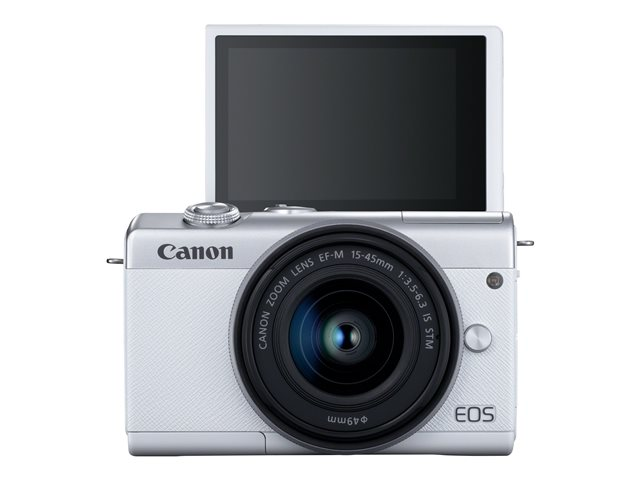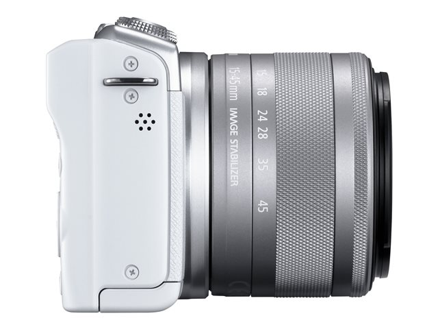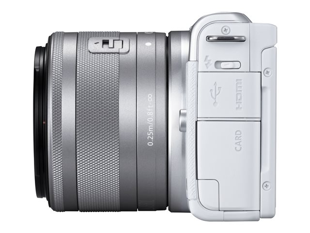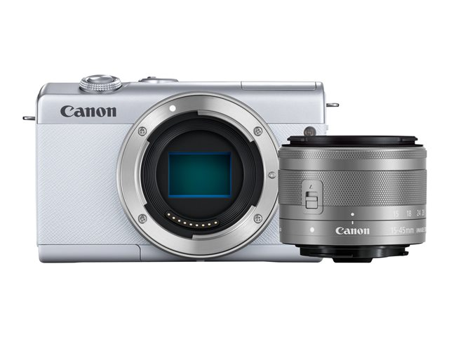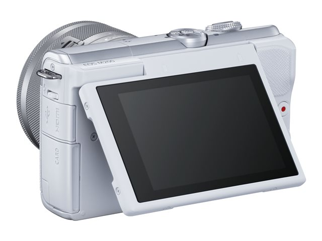 sans miroir - 24.1 MP - APS-C - 4K / 25 pi/s - 3x zoom optique objectif EF-M 15 - 45 mm IS STM - Wi-Fi, Bluetooth - blanc