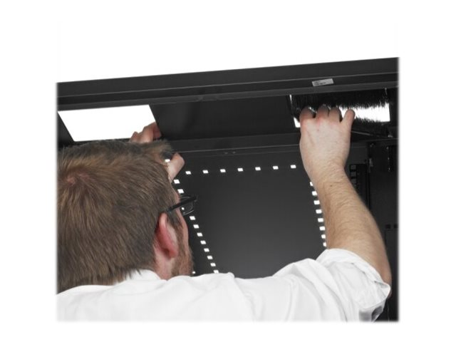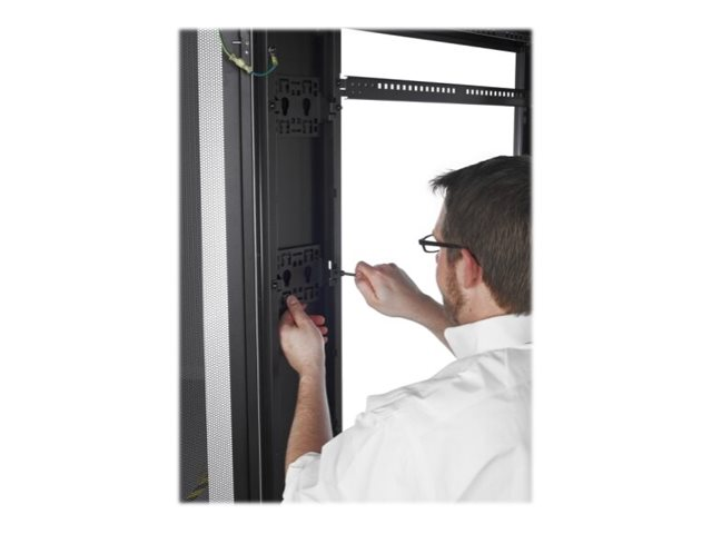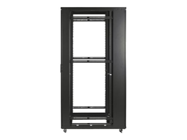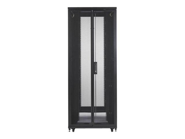 Large armoire informatique universelle avec davantage d'options de gestion de câble pour des applications de serveur et de mise en réseau plus denses. Inclut des espaces de montage 1U verticaux et intégrés adjacents aux espaces U de montage d'équipement EIA-310 d'armoires standard qui peuvent être retirés et remplacés par des accessoires 1U. Hauteur 42U pour passer facilement les portes.