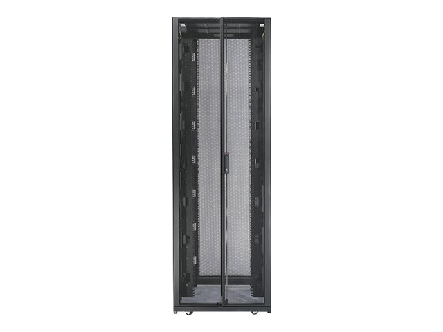 Armoires informatiques riches en fonctionnalités optimisées pour l'architecture en rangées InfraStruxure, la gestion des câbles, la distribution d'alimentation ainsi qu'une circulation d'air optimale.