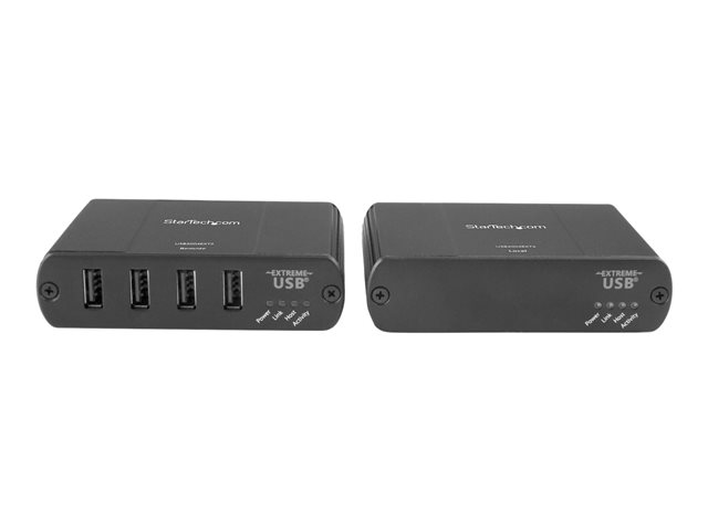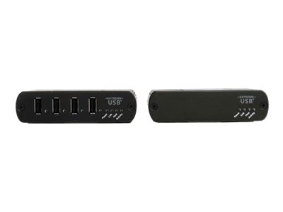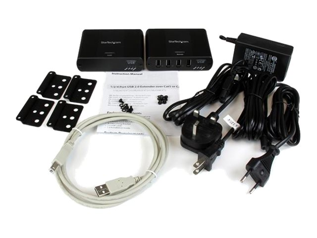 L'extendeur USB 4 ports USB2004EXT2 vous permet de prolonger jusqu'à 100 m les connexions des appareils USB 2.0 sur câble Ethernet Cat5 ou supérieur. Un adaptateur d'alimentation inclus à l'extrémité distante fournit jusqu'à 500 mA par port, vous permettant ainsi d'accéder à et d'alimenter quatre appareils USB 2.0 distants du système informatique hôte.