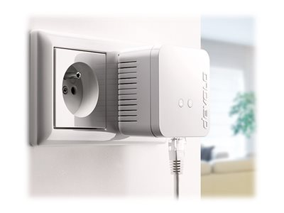 Allier le meilleur des deux mondes. Le dLAN 550 arrive. Avec son design, et la technologie range, le dLAN 550 simplifie votre réseau en vous offrant toutes les possibilités du multimédia. Avec le haut débit et une vitesse de transmission élevée, découvrez le divertissement en très haute qualité. La technologie range et assure une connexion Internet encore plus stable et une portée nettement supérieure. Pour davantage de stabilité et de mobilité dans toute la maison. En plus, aucune prise de courant n'est perdue: le dLAN 550 possède une prise de courant intégrée et offre aussi deux ports Fast Ethernet pour connecter deux appareils réseau. Découvrez maintenant tout le potentiel d'Internet avec le dLAN 550 de devolo.