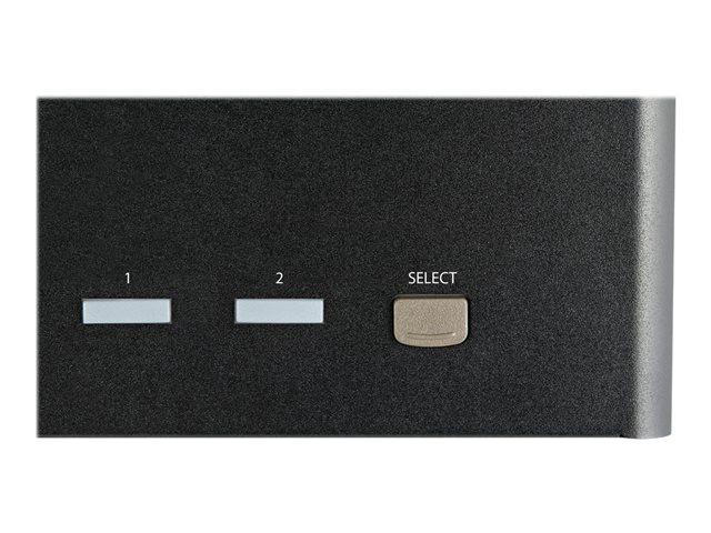 Ce commutateur KVM 2 ports associe des fonctionnalités d'affichage numérique 4K 60 Hz au contrôle d'un maximum de deux ordinateurs connectés.