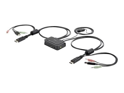 Le commutateur KVM DisplayPort à câble 2 ports avec audio et commutation distante SV211DPUA vous permet de contrôler 2 PC compatibles DisplayPort, USB à l'aide d'un seul jeu d'écran, de clavier, de souris et de périphériques audio.