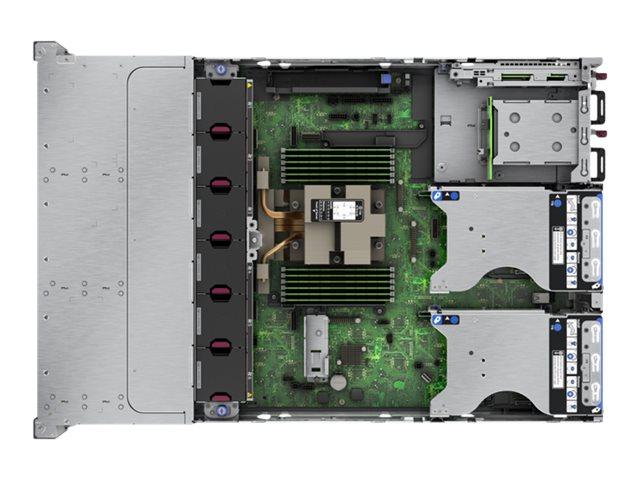 Serveur HPE ProLiant DL345 Gen11 avec un processeur AMD EPYC 9124, 32 Go de mémoire, huit baies de lecteurs à petit facteur de forme et un module d'alimentation 800 W Platinum à logement flexible.