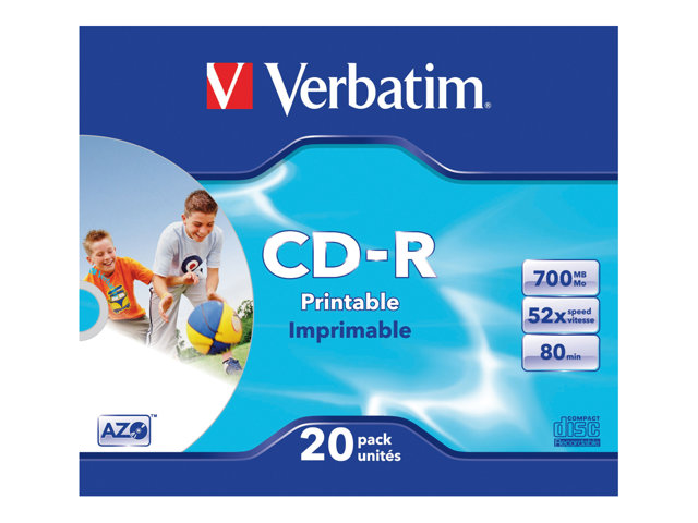 20 x CD-R - 700 Mo (80 min) 52x - surface imprimable par jet d'encre - boîtier CD étroit